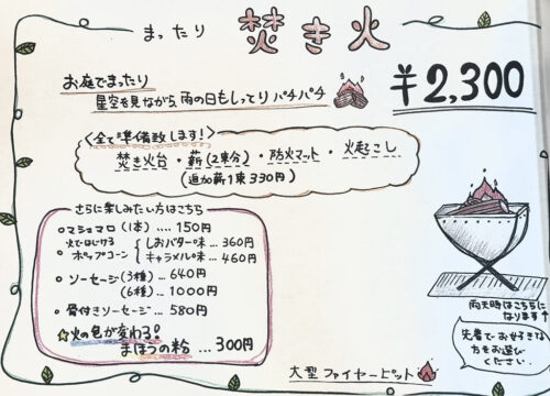 満天の星空を眺めながらまったり、ゆったり焚き火(¥2,300)